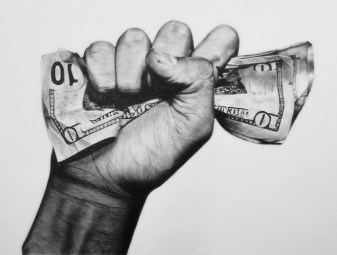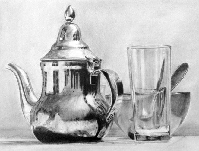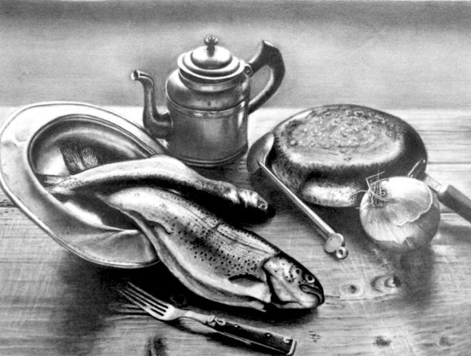 工具の質感まで見事に表現された鉛筆画